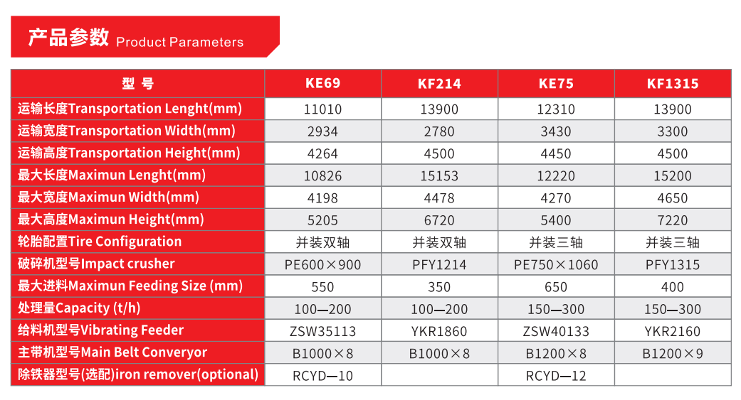 注:1.可根據(jù)客戶量身定制輪胎式移動破碎站;